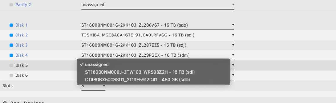 2. Configure el número de ranuras para coincidir con el número de discos que desea en sus vdev(s) de datos primarios.
